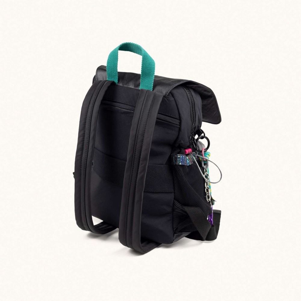 Mochila fabricada en poliamida reciclada. Compartimento principal con cierre por cremallera y magnetico. Bolsillo frontal con cremallera y compartimentos laterales en rejilla. Interior con capacidad para portatil de 15,6 " y con bolsillo con cremallera. Llavero extraible fabricado con cuerdas y cadenas. Parte trasera con bolsillo antirobo y con cinta de algodón para poder ajustar la mochila al trolley. Asas de hombro regulables y acolchadas para mayor confort y transpirabilidad.Diseñado en Barcelona.Material principal: 100% Recycled pre-consumer Polyamide.