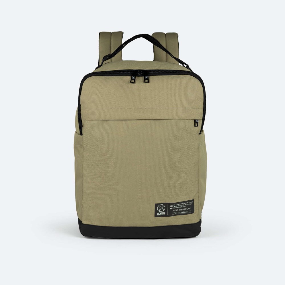 Mochila de formato underseat fabricada en poliester reciclado. Posee una capacidad de hasta 20 litros de capacidad, bolsillo frontal con cremallera y dos compartimentos laterales adaptables. Interior con compartimento para portátil. Trasera con cinta para poder ajustar la mochila al trolley y bolsillo con cremallera. Asas de mano regulable. Asas de hombro fabricadas con tejido acolchado para mayor confort y transpirabilidad.Diseñado en Barcelona.