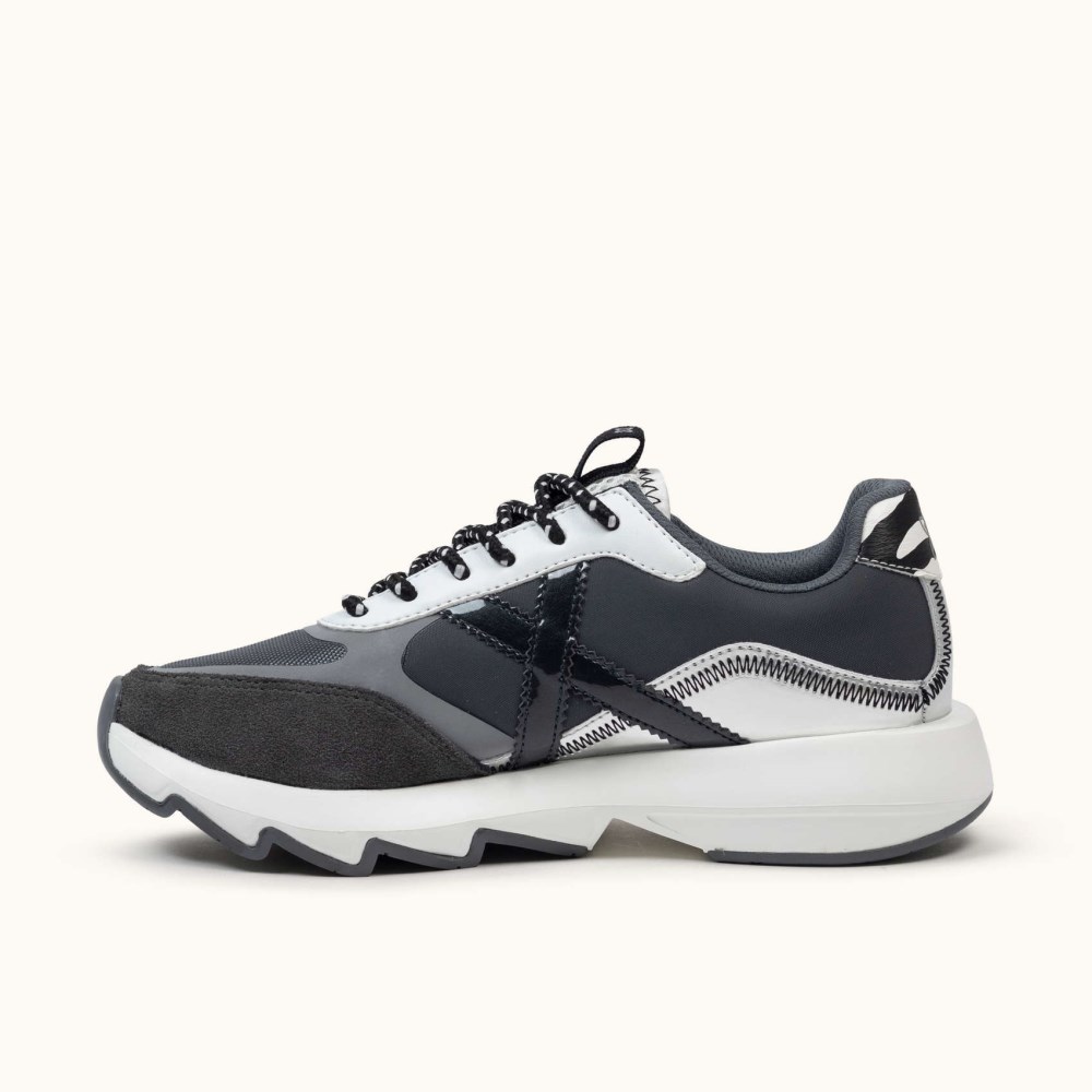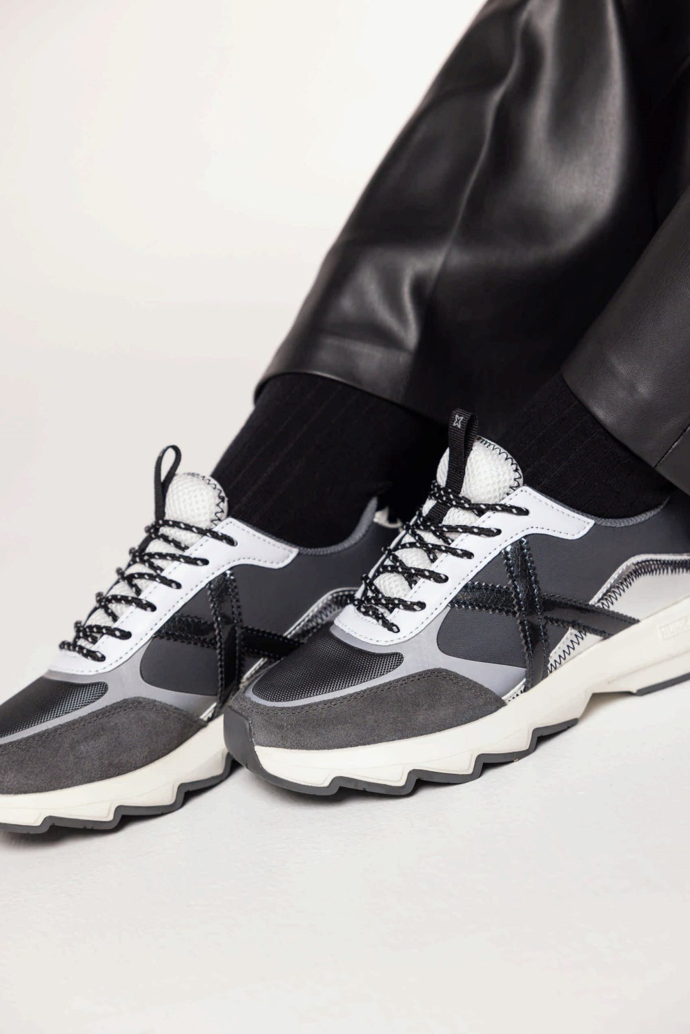 La READY es una zapatilla para mujer con suela curvada, ideal para combinar comodidad y estilo. Su material exterior de piel y tejido sintético, junto con el interior de tela, aseguran confort, mientras que el relleno contra el frío la hace perfecta para días frescos. Con puntera redonda, tacón plano y cierre de cordones.