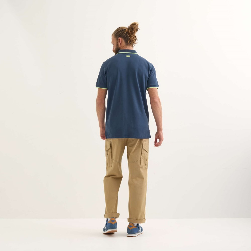 Polo en manga corta de estilo clásico y atemporal, hecho con tejido piqué 100% algodón lavado. De corte regular, con cuello en canalé y abertura con tres botones. Los detalles lima en el cuello, las mangas y el pecho le aportan un contraste vibrante y moderno.